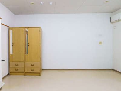 安全・清潔な居室で緊急コールも付き、緊急時には、職員が駆けつけます。全ての居室にリモコン付きエアコン完備。